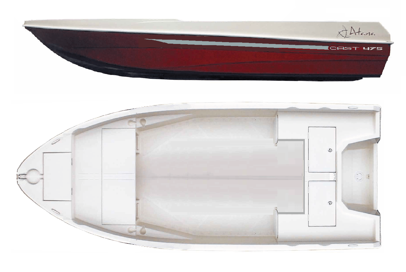 Jednostka ATANA CAST 475 technologicznie bazuje na modelu CAST 480 ale jest pozbawiona konsoli sterowniczej. Dzięki temu rozwiązaniu uzyskaliśmy jeszcze większą powierzchnię na pokładzie oraz możliwość zamontowania silnika sterowanego rumplem.