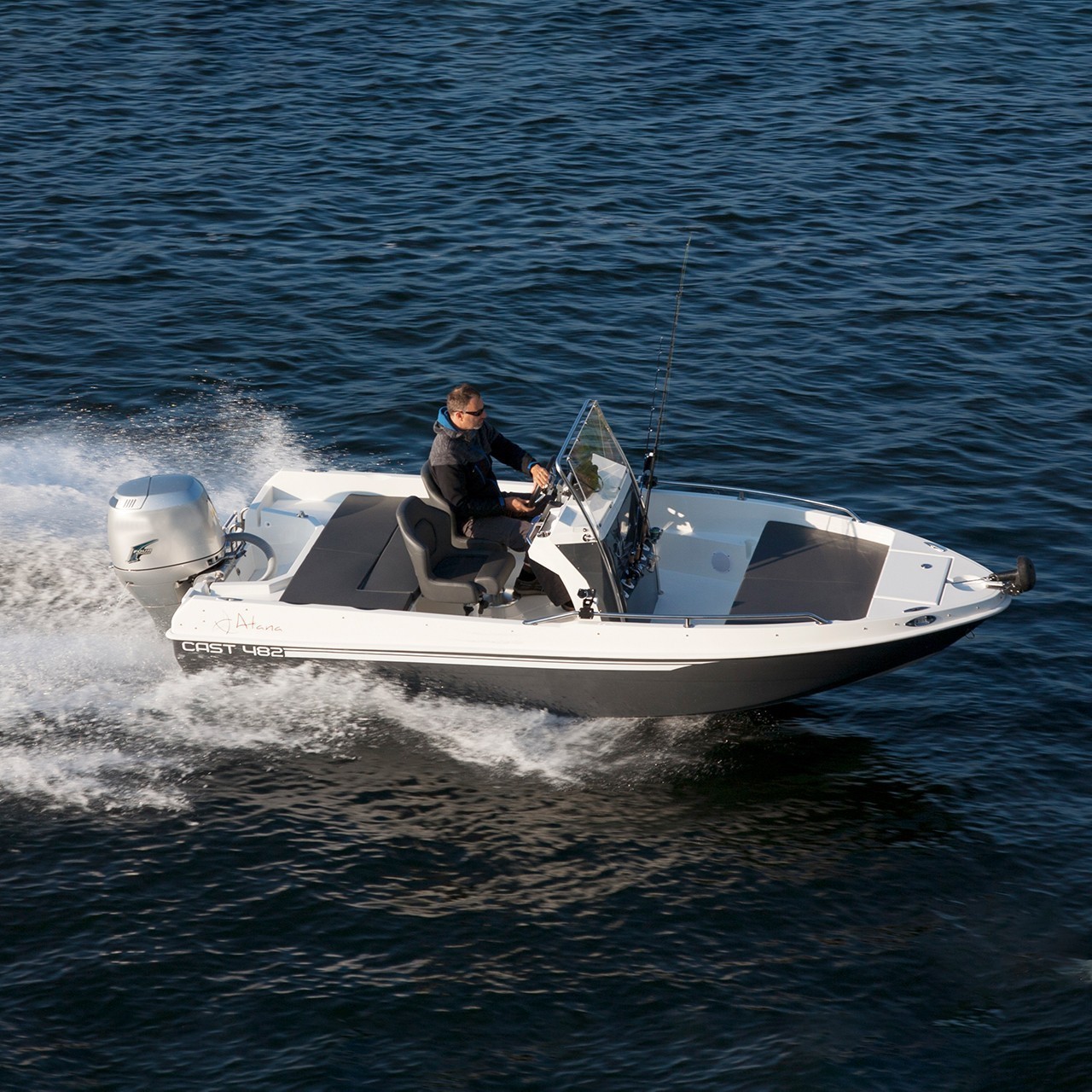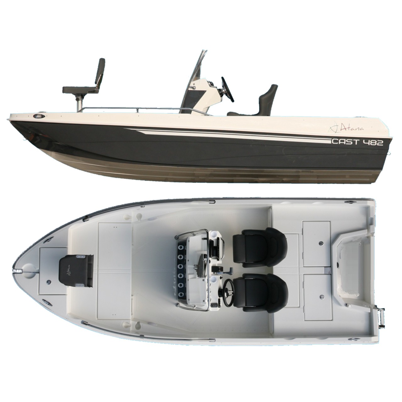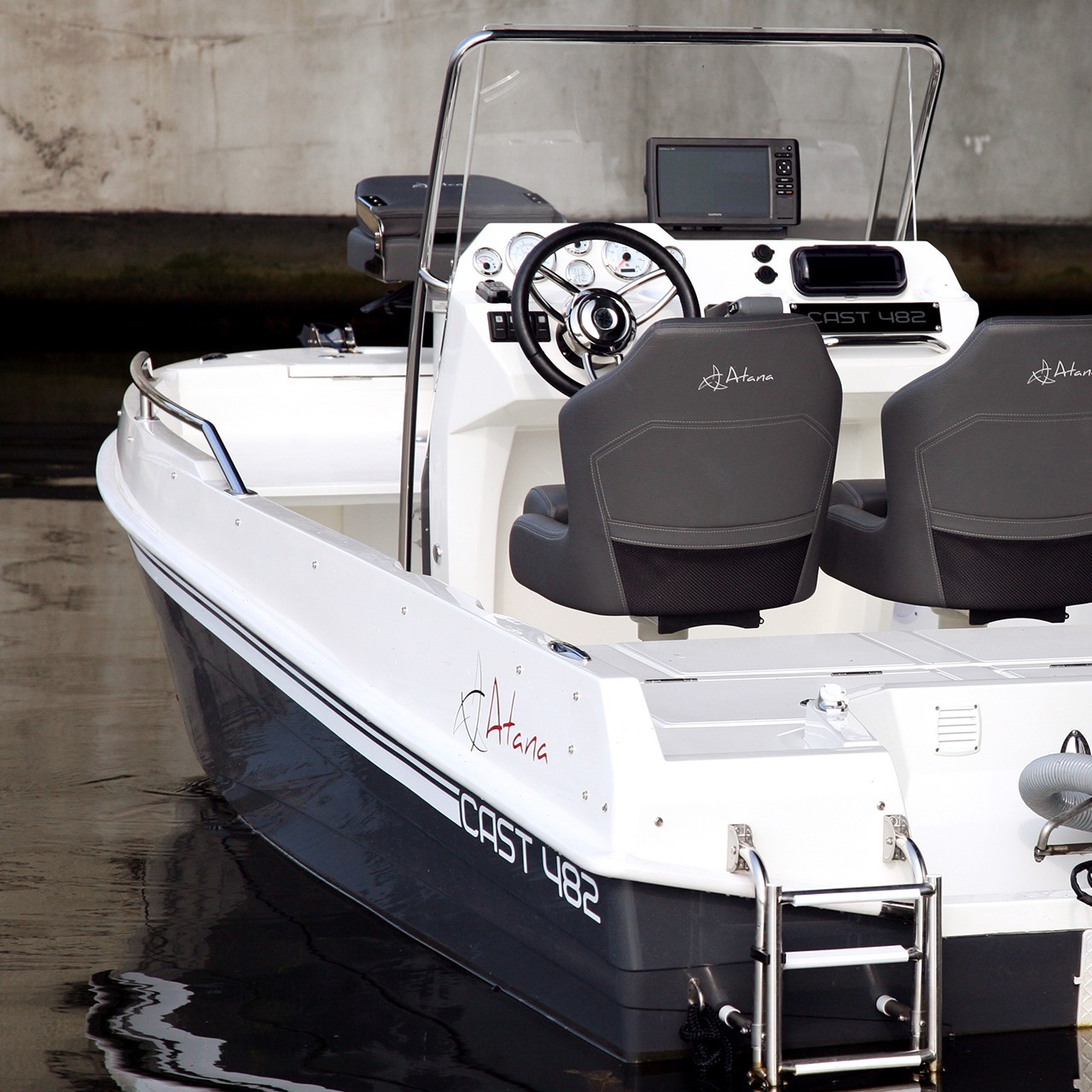 ATANA – CAST 482 bazuje na sprawdzonej konstrukcji CAST 480. Ten sam kadłub i pokład zapewniają dużą stabilność, bezpieczeństwo oraz ponad przeciętne osiągi. Model 482 posiada podwójną konsolę sterowniczą typu „walk around”. Może być wyposażony w 2 obrotowe fotele lub podwójną ławkę.