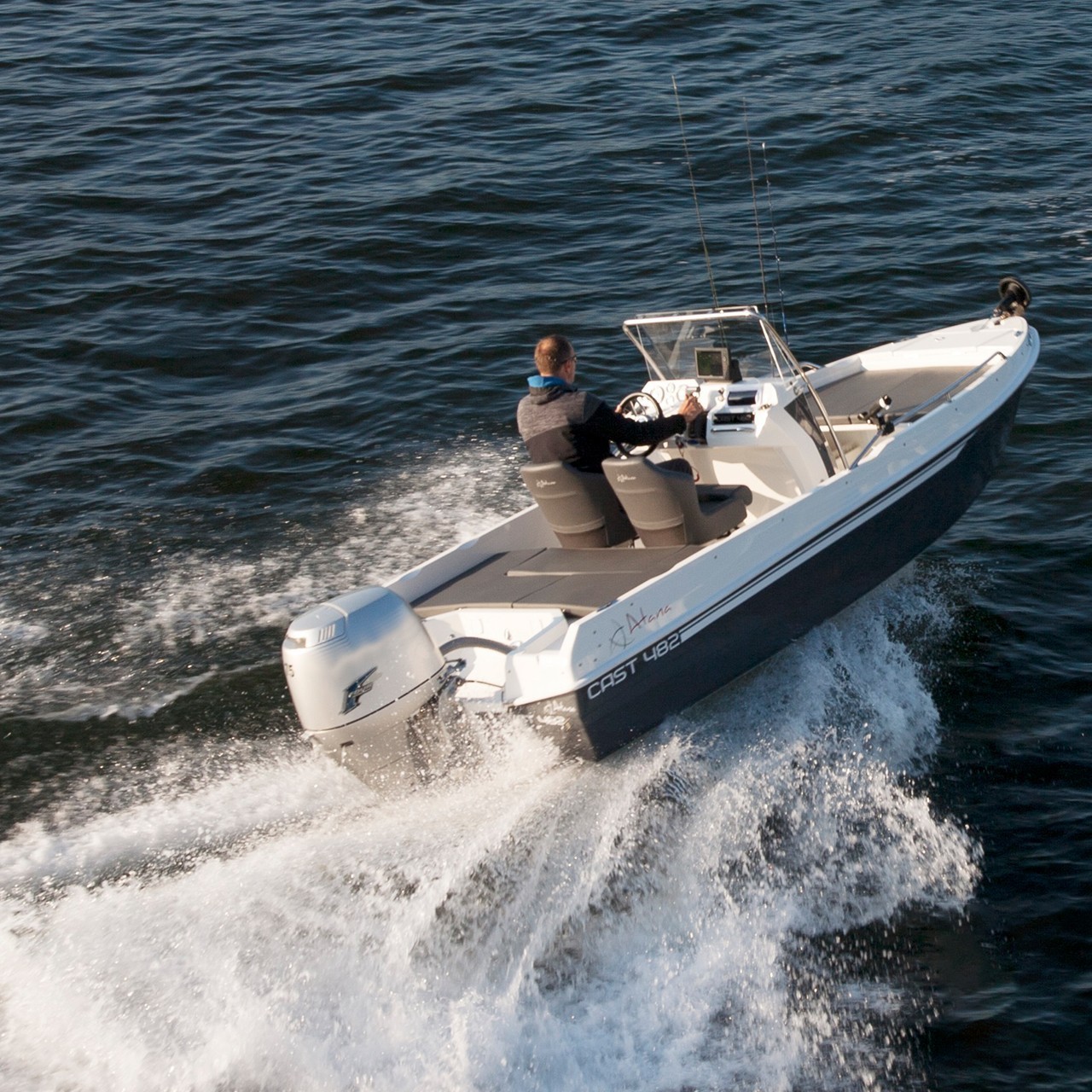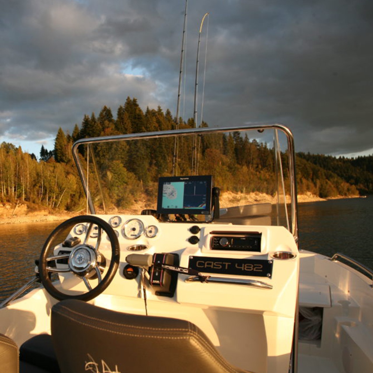 Dzięki takiemu rozwiązaniu pozostawiliśmy wszystkie walory łodzi wędkarskiej, a dodatkowo zwiększyliśmy komfort podróży dla dwóch osób, które teraz mogą siedzieć obok siebie. Dzięki zachowaniu tego samego pokładu i kadłuba z modelu co model CAST 480 otrzymujemy motorówkę wędkarską stworzoną przez pasjonatów spinningu. Kadłub wyszedł spod ołówka projektantów motorówek, a zabudowa to wiele lat doświadczeń wędkarzy. Połączenie tych dwóch środowisk dało wyspecjalizowaną łódź gotową na połowy wielkich ryb. Konsola sterownicza typu „walk around” pozwala na walkę z rybą nie tracąc kontroli ani na chwilę. Platforma dziobowa i rufowa to idealna stabilność pozwalająca na łowienie na stojąco nawet w trudnych warunkach. Brak odstających elementów i ostrych krawędzi to wymarzone środowisko dla muszkarzy. Na łodzi bez trudu można uczyć się lub profesjonalnie łowić na muchę.