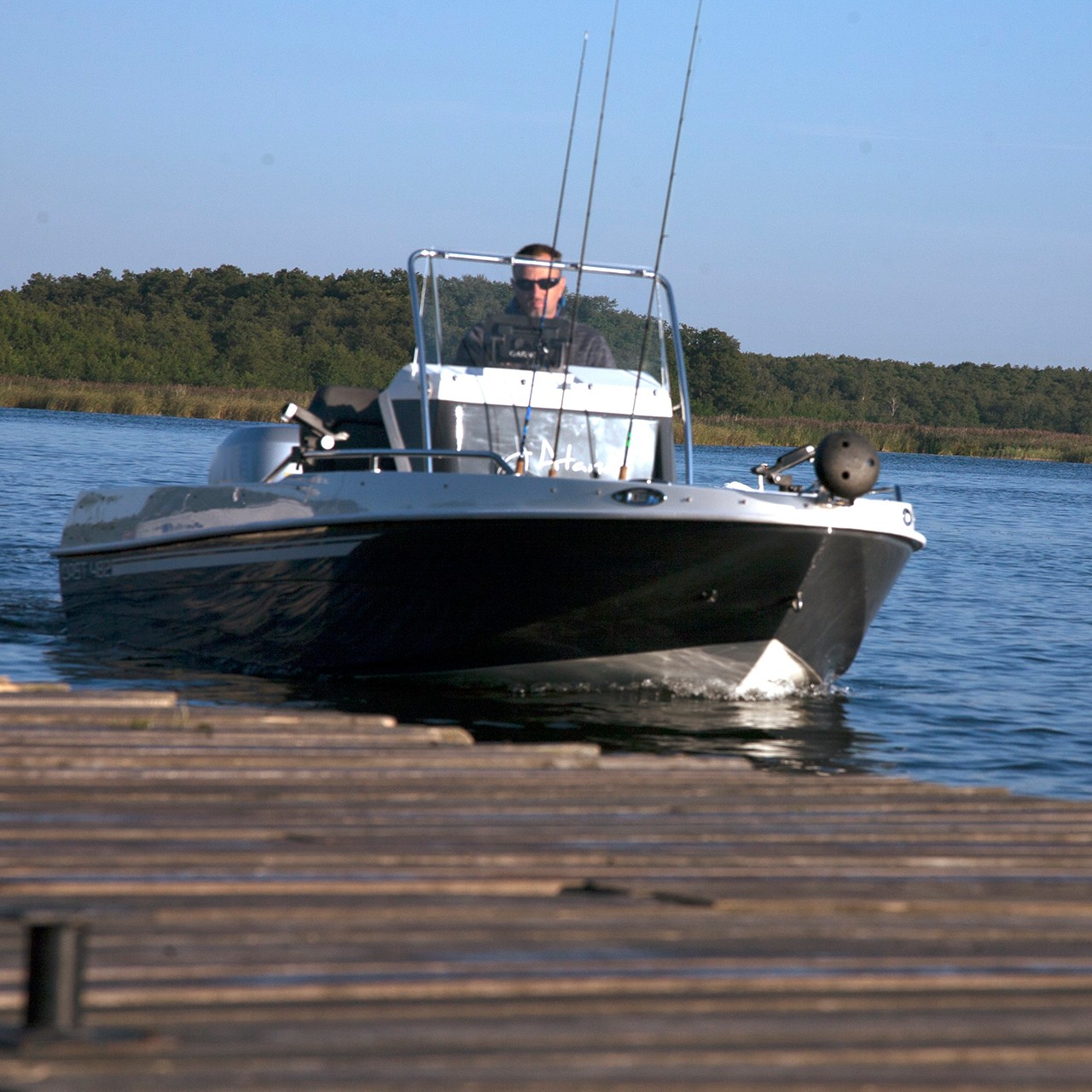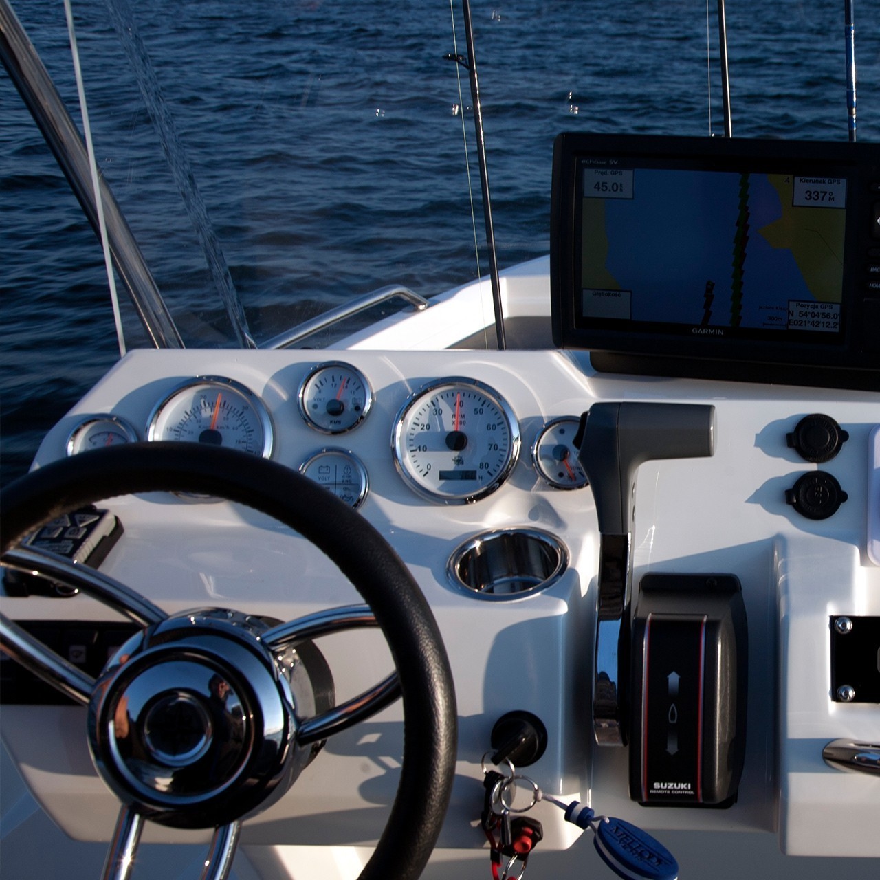 Przetłoczenia w pokładzie na szybką obsługę kotwicy, wymianę przynęt. Schowki i uchwyty zaprojektowane specjalnie pod sprzęt wędkarski pozwolą na błyskawiczną adaptację do panujących warunków pod wodą. Specjalnie przemyślana pawęż umożliwia na przykręcenie każdego uchwytu na echosondę na chwilę lub na stałe bez ryzyka, że nie pozostanie stabilna.