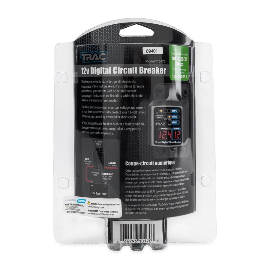 Cyfrowy wyłącznik zwarciowy z wyświetlaczem – 12V, 10-25 Amp. Automatyczny bezpiecznik z możliwością zaprogramowania natężenia przy, którym wyłączy obwód. Cyfrowy wyłącznik zwarciowy – dane techniczne: