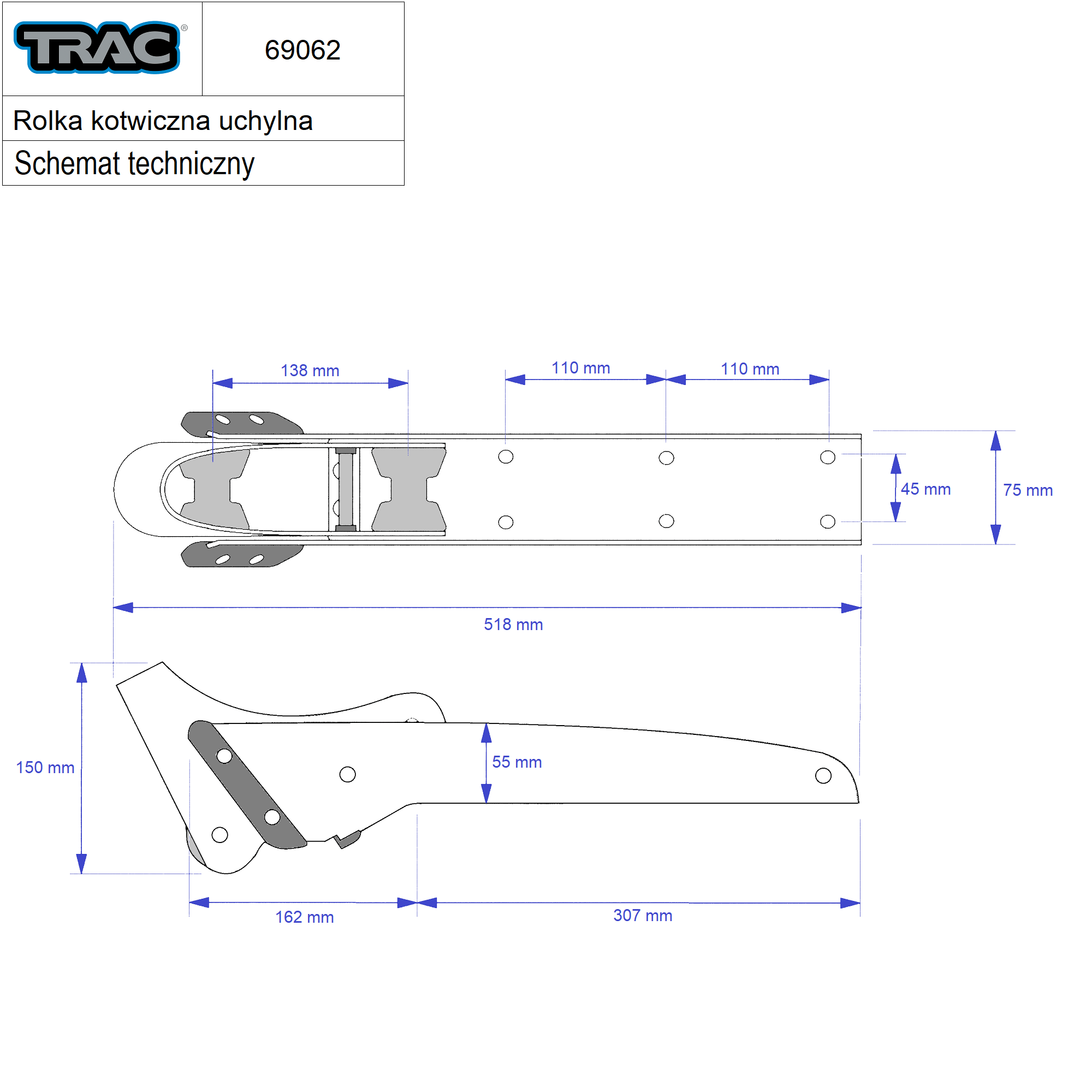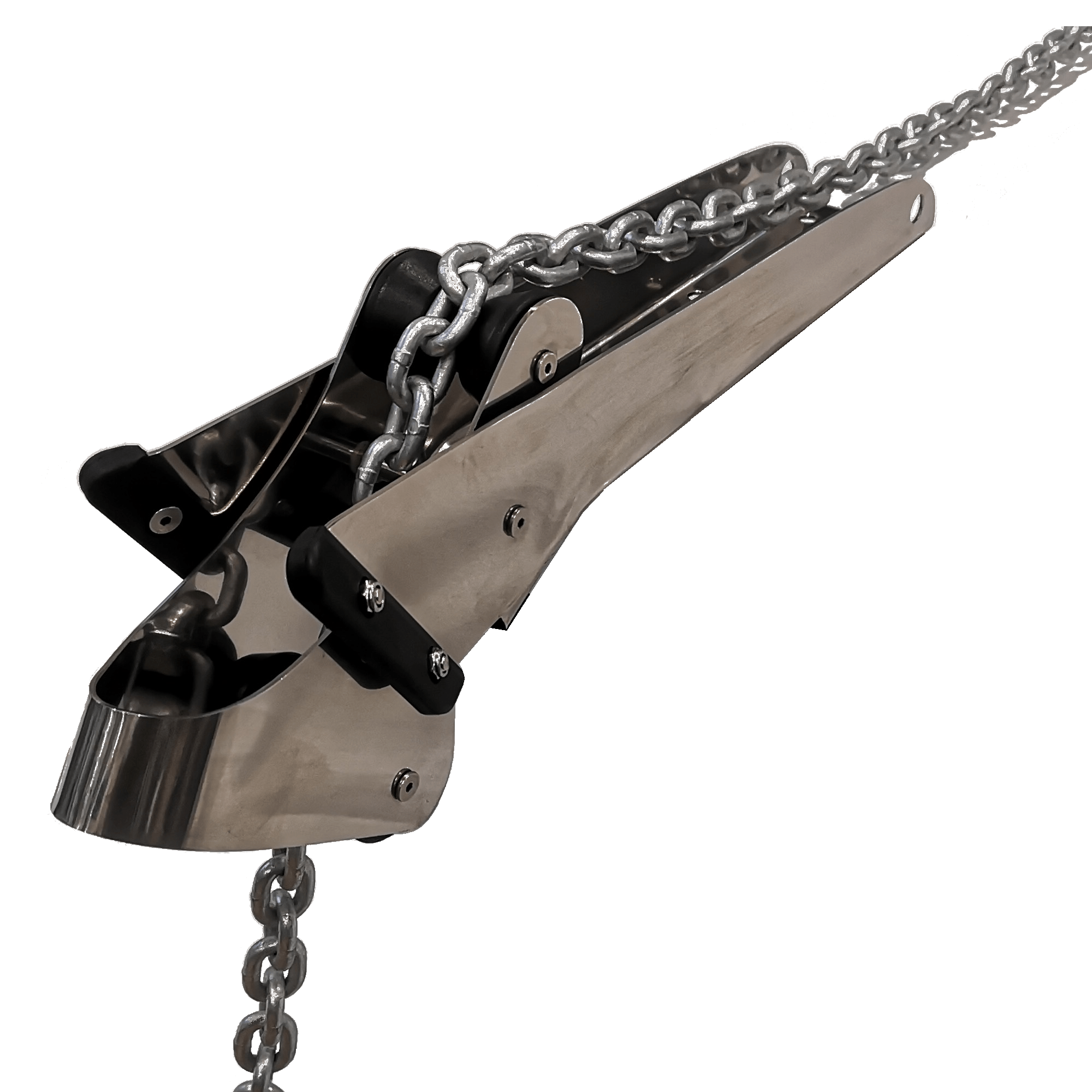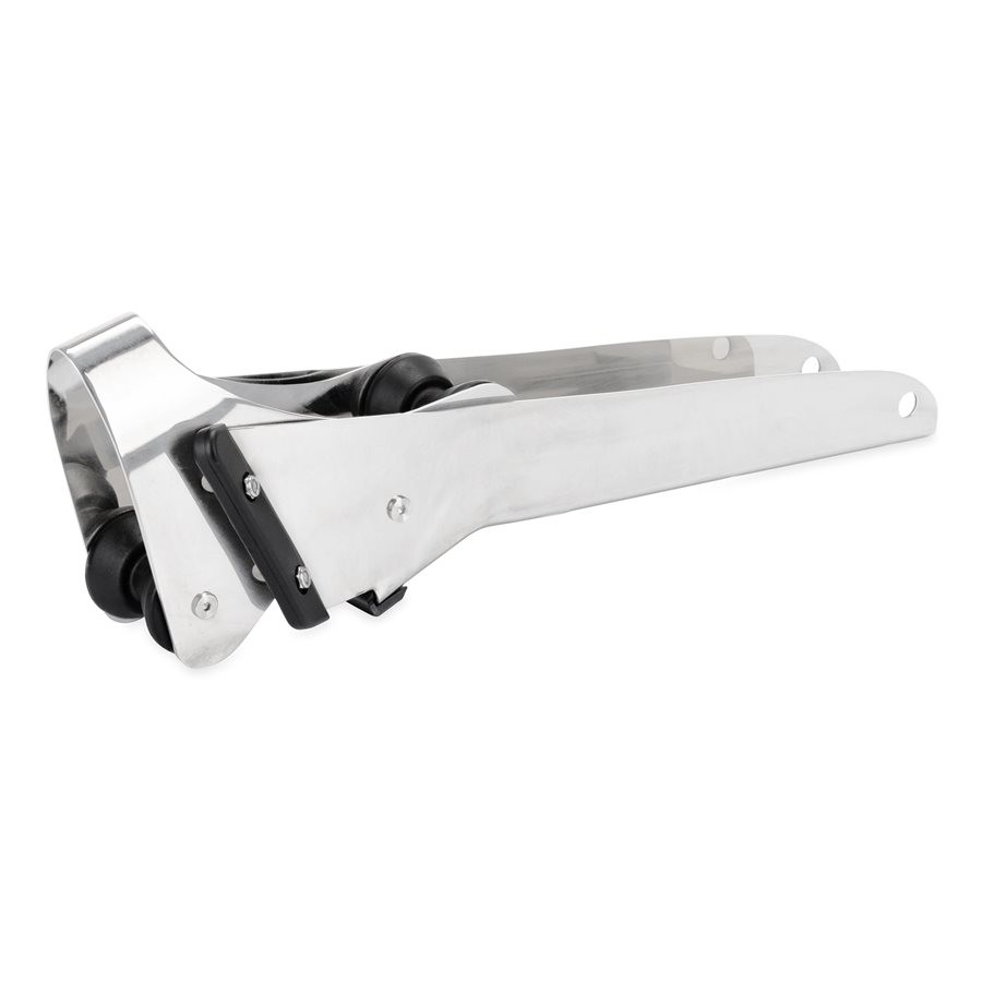 Rolka kotwiczna uchylna TRAC. Wysokiej jakości rolka, wykonana z polerowanej stali nierdzewnej. Jej uniwersalność sprawia, że doskonale współpracuje z różnymi rodzajami kotwic pługowych, zapewniając niezawodne i skuteczne mocowanie. Dedykowana konstrukcja umożliwia bezproblemowe korzystanie zarówno z lin, jak i łańcuchów kotwicznych, co sprawia, że jest idealnym rozwiązaniem dla każdego, kto ceni sobie łatwość obsługi i elastyczność w wyborze sprzętu. Dodatkowo, polerowana powierzchnia stali nierdzewnej nie tylko gwarantuje trwałość, ale także estetyczny wygląd, nadając elegancki akcent wyposażeniu każdego jednostki pływającej. Rolkę można stosować z dodatkową rolką prowadzącą SKU RP96. Rolka kotwiczna uchylna TRAC – dane techniczne: